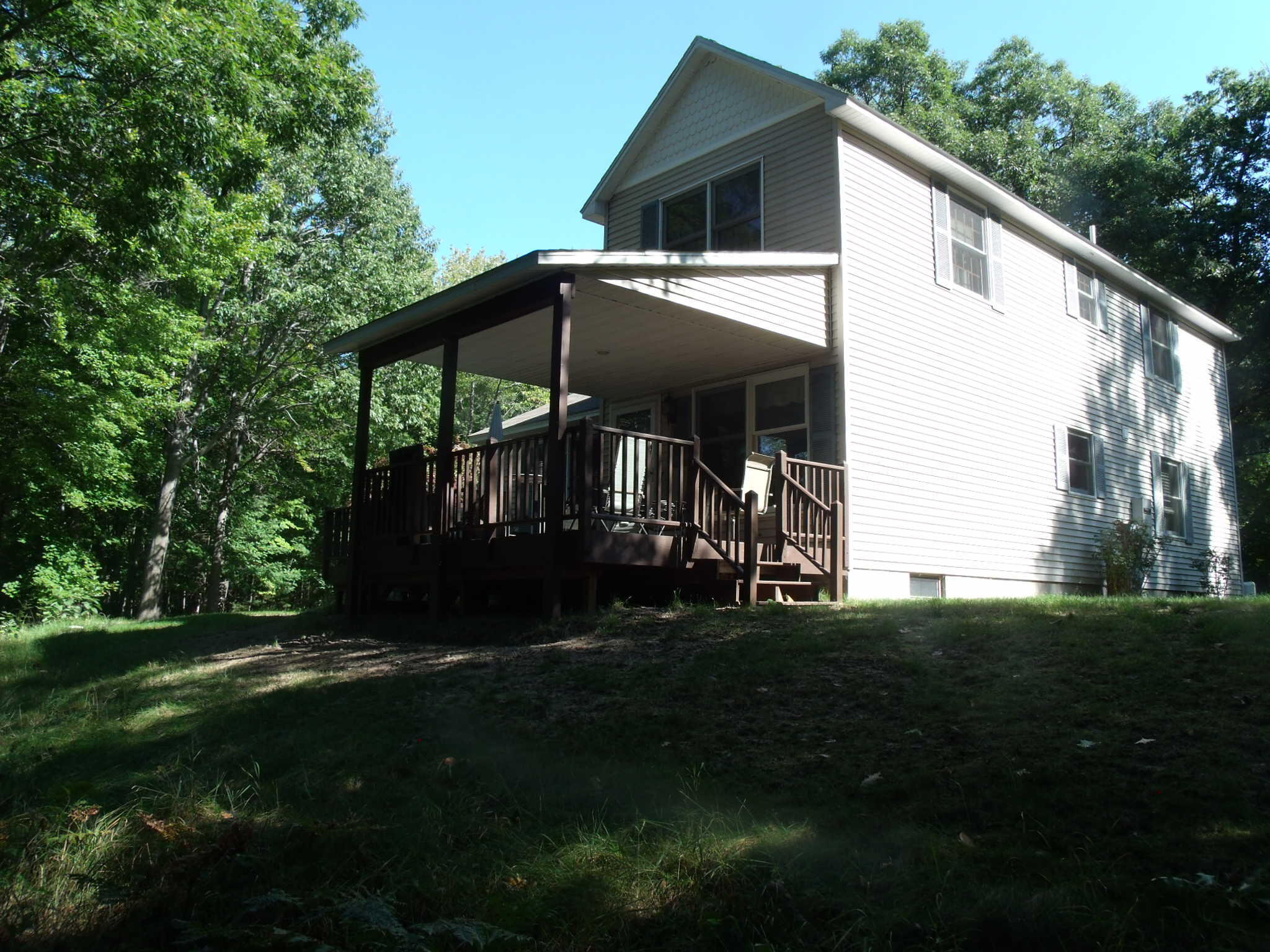 This Charming Two Bedroom Two Bathroom Full Log Home Sits on 3.19 Acres, Natural Gas, Gas Fireplace with Stone , Vaulted Ceilings, Covered Front & Side Porches Plus open Deck. All appliances Included, 16 K. Watt Whole House Generac Natural Gas Generator, 30 x 40 Ft.